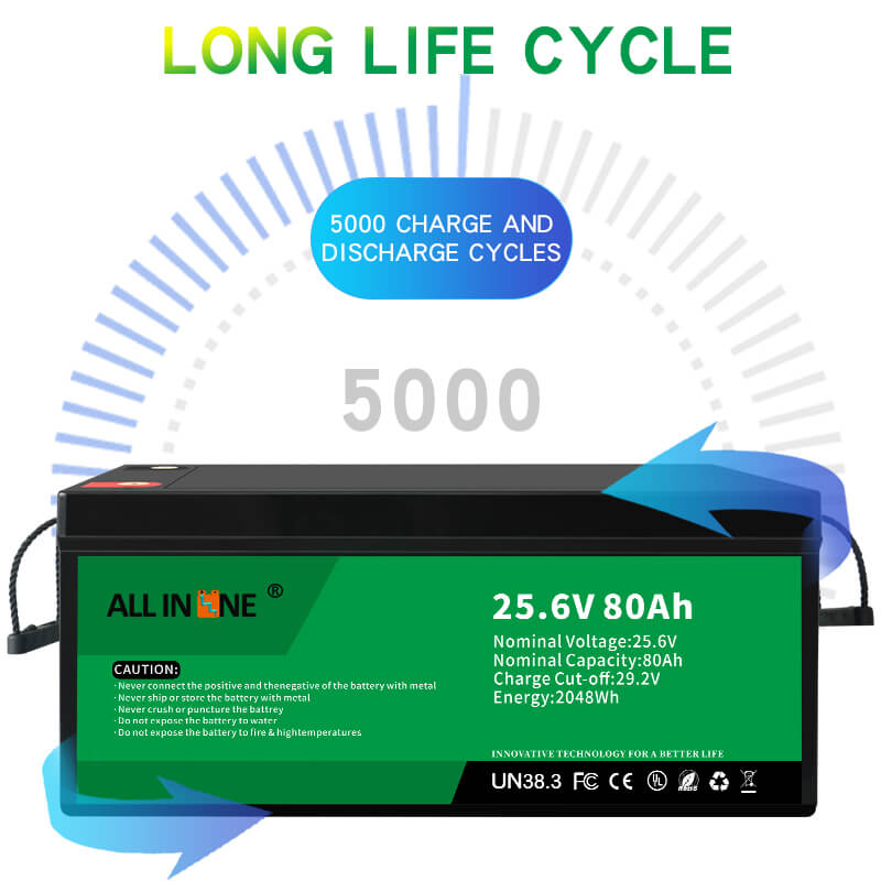 ეს 25.6V 80Ah LFP ბატარეა შეიძლება იყოს სრულყოფილი შემცვლელი AGM/GEL ბატარეისთვის, ALL IN ONE ასევე უზრუნველყოფს მორგებულ ბატარეებს განსხვავებული ტევადობით, განზომილებით და ფუნქციებით მომხმარებლის სპეციფიკური მოთხოვნების შესაბამისად. AGM/GEL ტყვიის მჟავას ბატარეებთან შედარებით, ALL IN ONE Li-ion (LiFePO4) შემცვლელი ხსნარი აქვს შემდეგ უპირატესობებს