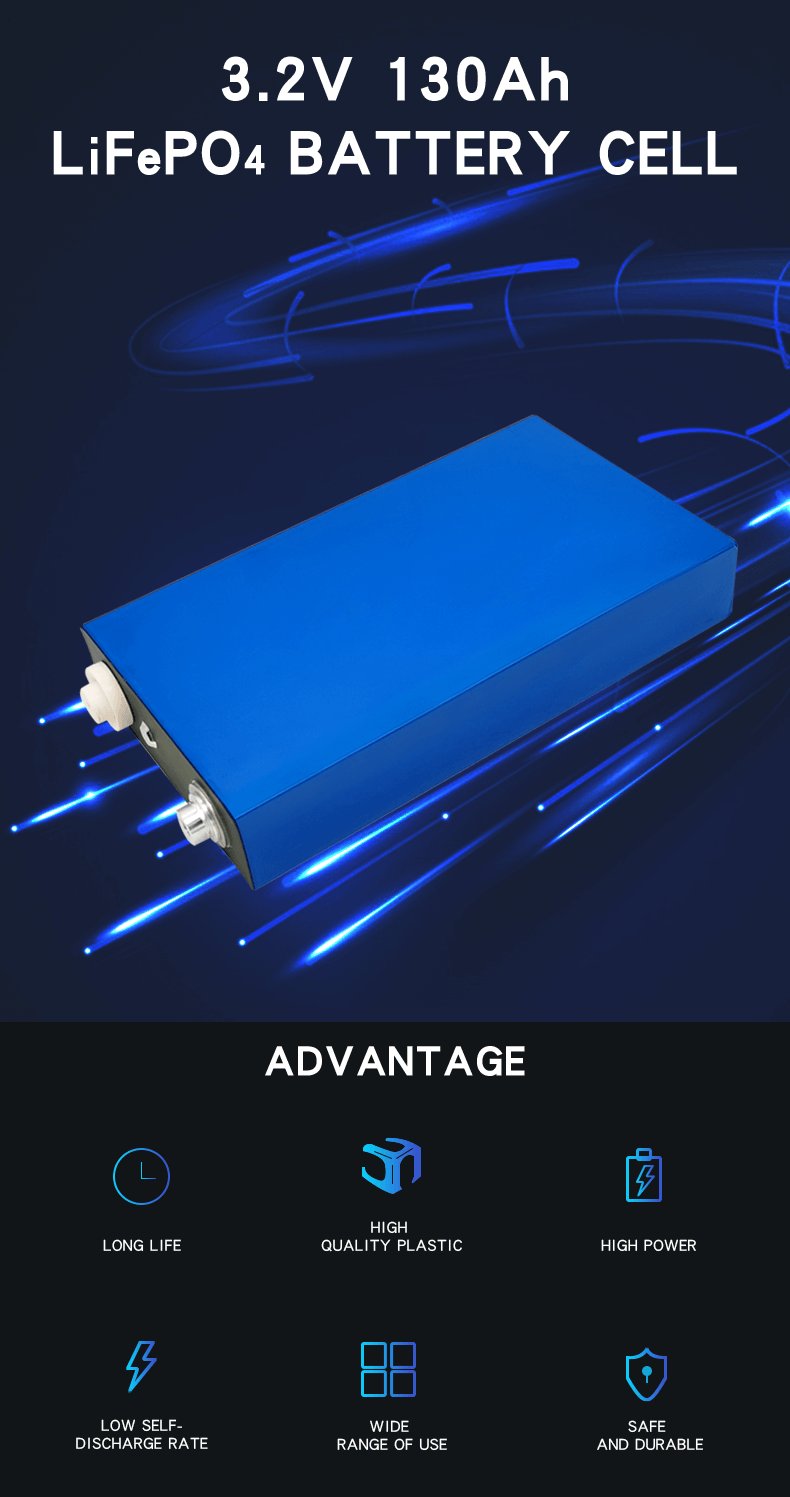 ეს UL სერტიფიცირებული 3.2V 130Ah LiFePO4 ბატარეის უჯრედს აქვს შემდეგი უპირატესობები: