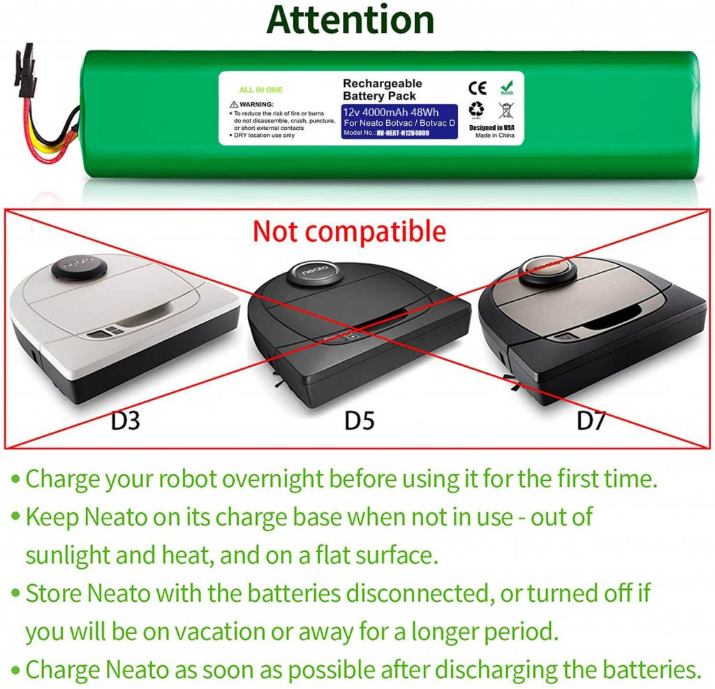 * Neato– ს შენახვისას გათიშეთ ელემენტი ან გამორთეთ მანქანა. გთხოვთ, შეინახეთ უჯრედი ნახევრად დამუხტული ძეგლის ქვეშ, ან სრულად არ დაატენოთ და არ ჩაწეროთ, თუ ხანგრძლივი შენახვა გაქვთ.