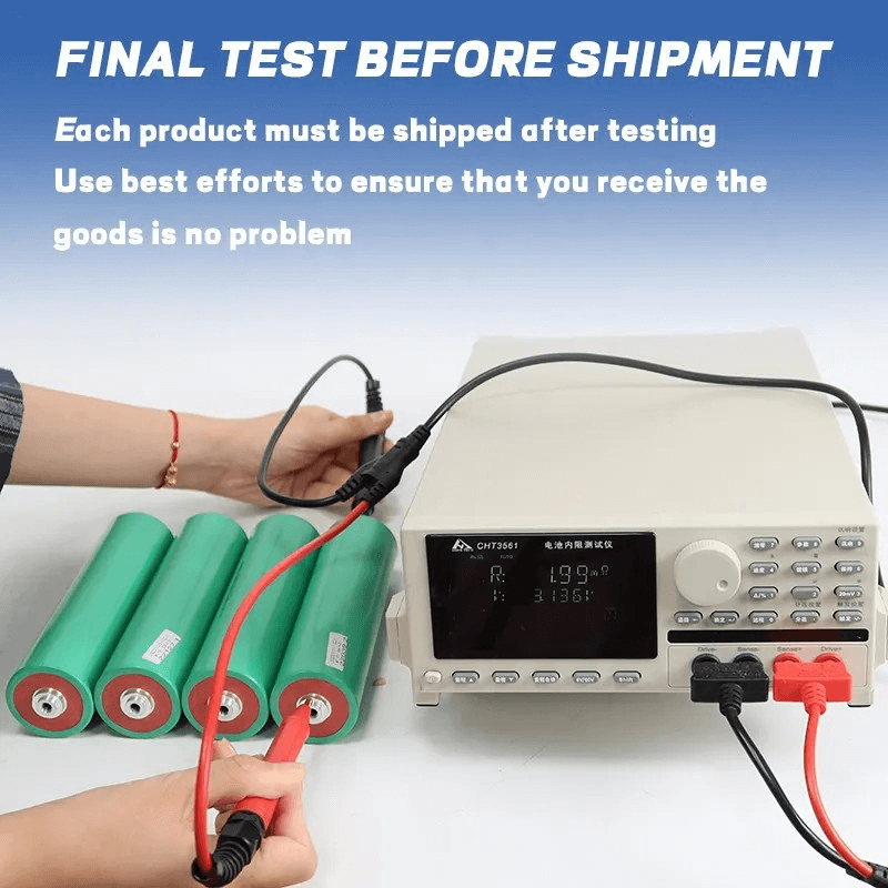 ნაკაწრების კვალი ნორმალური ფაქტორია, რადგან ქარხნული ხარისხის კონტროლი რამდენჯერმე შემოწმდა. სხვადასხვა შემოწმების დროს, ყველა აკუმულატორი ერთად არის მოთავსებული და ხარისხის კონტროლი შეამოწმებს ჩვენს საწყობში; ყველა პრიზმული ელემენტი ლაზერით შედუღებული იქნება, თითოეული უჯრედის ძაბვა და შიდა წინააღმდეგობა შემოწმდება, რათა დარწმუნდეთ, რომ აკუმულატორის ელემენტები შეესაბამება და ჩვენს საწყობში პარტიულად იტვირთება.