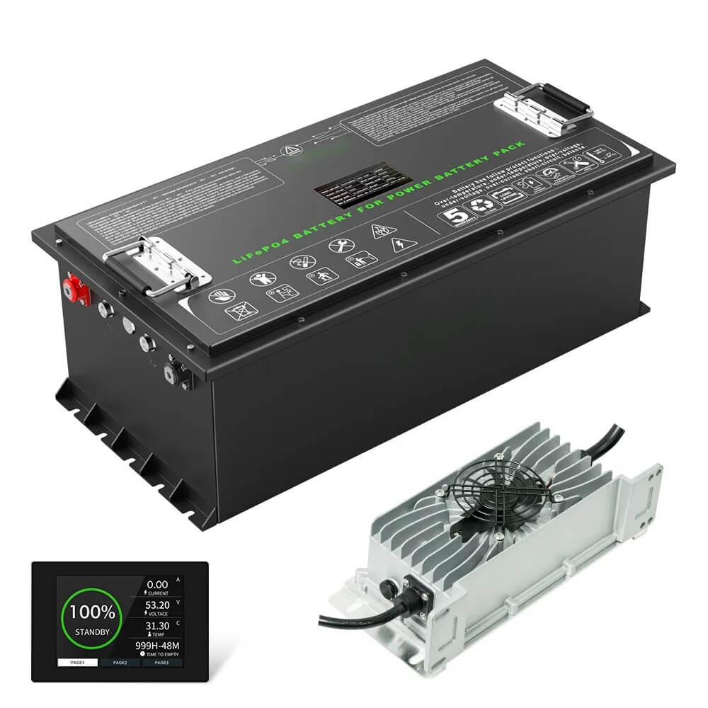 【Smart Battery Monitor LCD】ALL IN ONE lithium golf cart battery offers robust acceleration and performance, enabling users to conquer challenging terrain and extend their golf range up to 50 miles on a single charge.
