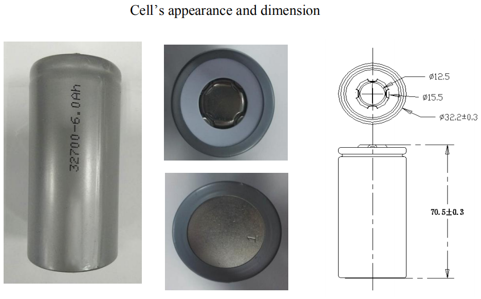 Cell SIze | დიამეტრი: 32,2 ± 0,3 მმ, მაქსიმალური 32,5 მმ | სიმაღლე: 70,5 ± 0,3 მმ, მაქს. 70,8 მმ |