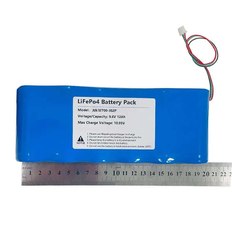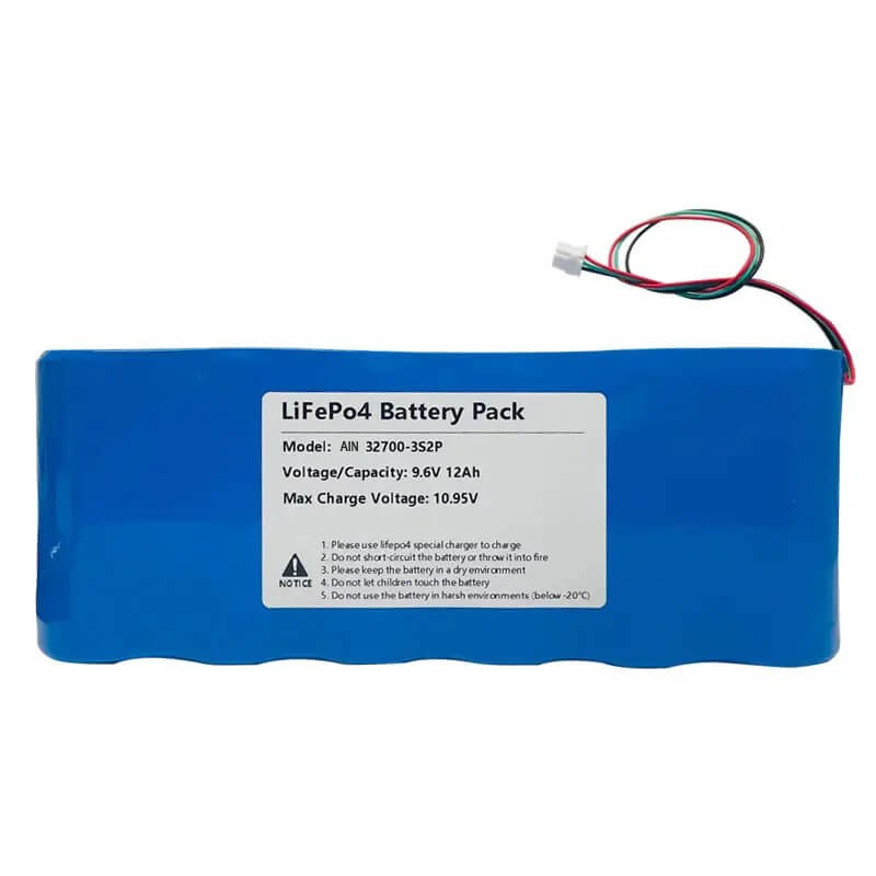 | Პროდუქტის სახელი | 32700-3S2P 9.6V 12Ah lifepo4 battery pack |
