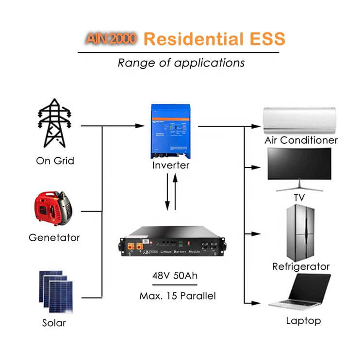 1.AIN2000 48v მზის სისტემის ბატარეა შემუშავებულია მაღალპროდუქტიული LFP უჯრედის 3.2V 50Ah და EV სტანდარტული სტრუქტურით, რათა უზრუნველყოს უსაფრთხოება და შესანიშნავი სერვისი