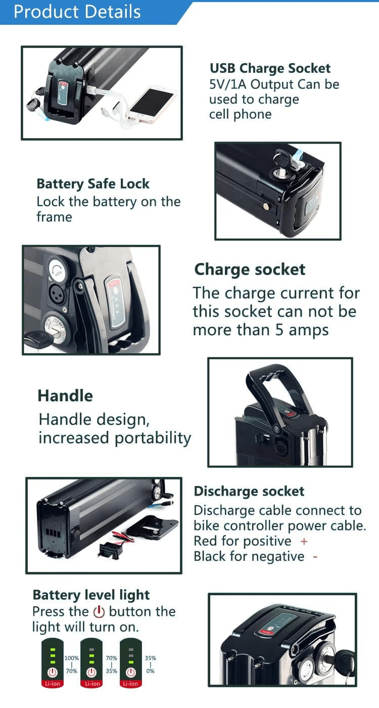 A: დენის კედლის ბანკი, პორტატული კვების წყარო, ლითიუმის ელემენტი, დამტენი, გოლფის ურიკის ელემენტები