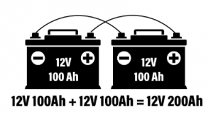 ქვემოთ მოცემულ მაგალითში გვაქვს ორი 12 ვ ბატარეა, მაგრამ ხედავთ ამპ-საათების ზრდას 200 აჰმად.